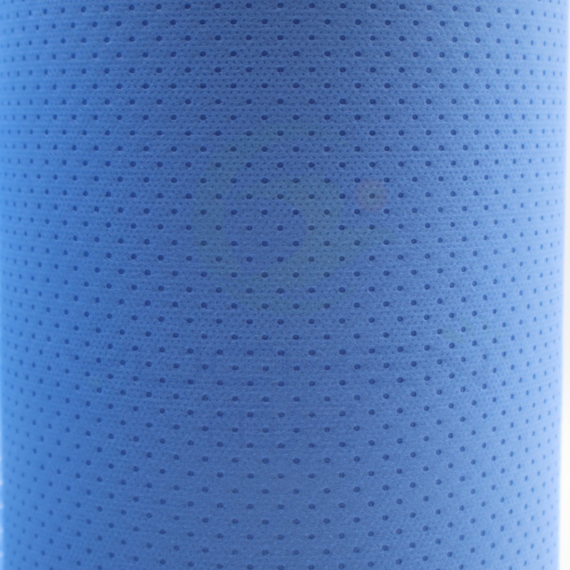 El absorbente SSSPE no tejido, utiliza polipropileno como materia prima, compuesto de PP spunbond, reforzado por sellado térmico/laminado ultrasónico y luego tratado hidrofílico, finalmente laminado con película de PE, uso para campos quirúrgicos.